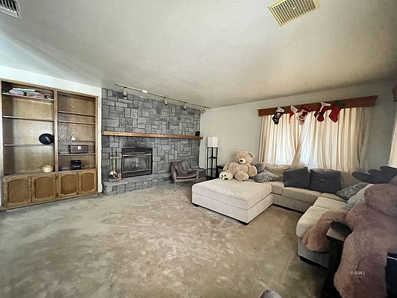 This home has a unique floor plan. Enter a large open floor plan with a step down living room featuring a wood burning fireplace. Spacious suite with fireplace and wall AC unit. Huge jetted tub and walk in tile shower with double shower heads, double sinks with tile counter tops. Large guest room with mirror closet doors, and an office with a closet. Large kitchen has lots of cabinets and bar area great for entertaining. Inside laundry with lots of cabinets. Covered back patio and movable sink area, lots of shade trees, block wall around the home with wrought iron gates. Terraced front yard with steps to the front door. Sit on the front porch and look at the beautiful view of the city and mountains. 3 car attached over sized garage, 2 car covered carport and a covered RV carport with 50 -amp power. Low maintenance landscaping. Schedule your showing today!