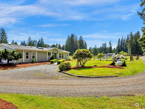 Desirable Arlington Heights 5.94 acre fenced, gated, cleared property with updated home. Features an 12x20 exercise gym, large shop, 3 stall barn, equipment storage and much more. Great well with water purification system. Fruit trees, fenced garden space, green house shell, gazebo, newer roof, air conditioning, custom cabinets and countertops. New 10 x 16 storage shed, blueberries, green and purple grapes, pear trees, apple trees, walnut tree. Energy saving appliances, new skylight, window coverings, instant hot water tank. 36 x 36.5 barn (1314 SF).
