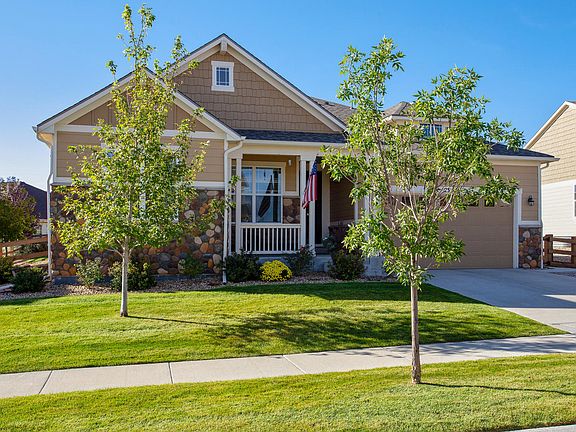 Better Than New*Impeccable Ranch w/ Full Finished Basement*Open floor plan*Gorgeous hardwoods*Large gourmet kitchen, Silestone counters & designer backsplash; Island w/ extra workspace & breakfast bar; Elegant pendant lights; Stainless steel appliances including a 5 burner gas stove, double ovens; breakfast nook, upgraded cabinets & pantry*Sun-filled great room w/ beautiful windows, stone surround fireplace, & built-in shelving*Stunning & luxurious master bedroom: high-end carpet, tray ceiling, sunny & bright, 2 large walk-in closets, ceiling fan, 5 piece master bath*Main floor Study/ possible 4th bedroom*Two additional private bedrooms w/ full baths*Basement: wired for home theater, wet bar; exercise & craft rooms*Spacious laundry room & extra storage*Professionally landscaped lawn, fully fenced w/ patio*Window treatments included*Easy access to Inspiration neighborhood trails, parks & open space*Quick access to E-470, DTC & DIA*Minutes from great restaurants, shopping & entertainment