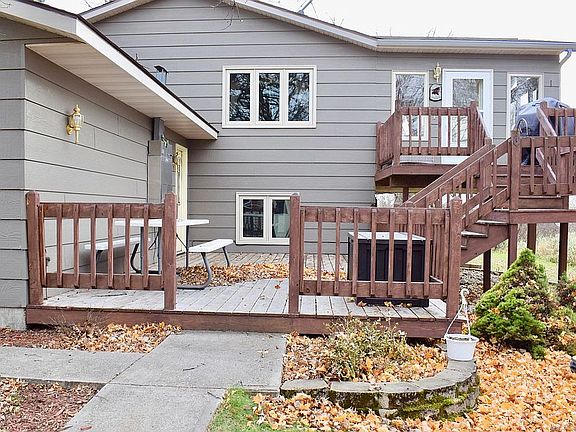 This 5-acre well maintained property offers a peaceful beautiful county setting. This split level home has an attached garage, 4 bedrooms, 2 bathrooms, laundry room, lots of storage space, family room, and additional space that could be used as another family room or 5th bedroom. The home's upper level has an abundance of natural light with a sunroom that walks off onto to a large two level deck with the view of the wooded back yard. The grounds contain a detached 28x28 heated garage, a water view of a gorgeous pond across the road, and woods in the back yard that would be ideal for hunting or enjoying wildlife.