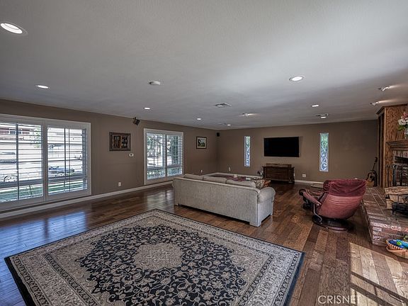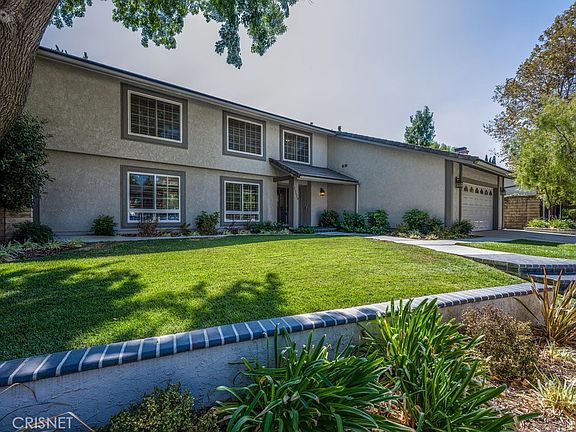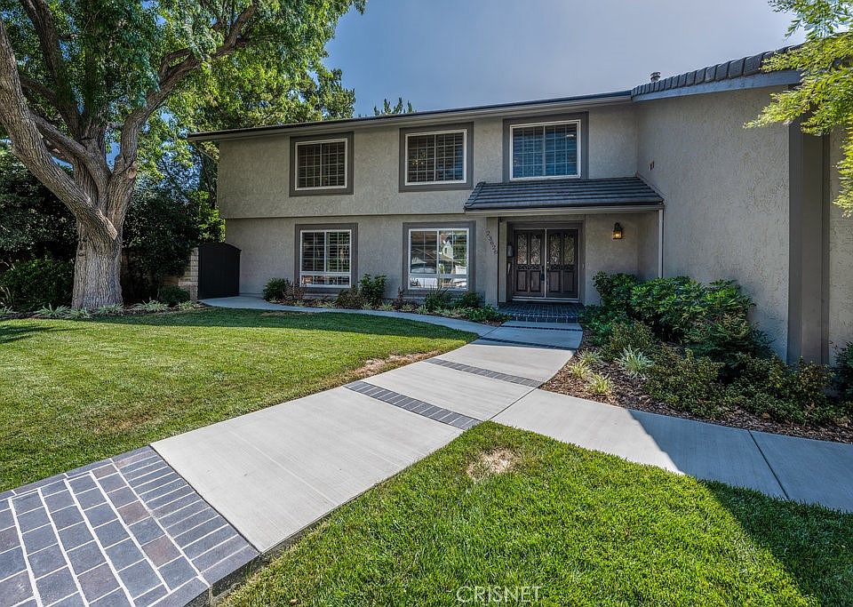 Welcome Home to this stunning property in a most desirable, prime neighborhood of established Valencia! Situated at the end of a cul-de-sac, this Super desirable location is adjacent to a large park and the coveted paseo system. The property is approx 2,900 Sq. Ft with 5 large bedrooms and 2 and a half baths. (The one downstairs bedroom is now being used as a home office with beautiful built-Ins and separate side entrance.) Where to start!? The entire home is beautifully upgraded with top-of-the-line amenities to include lovely kitchen remodel with Viking stove top, microwave and double ovens, beautiful, beveled granite, bay window and soft close custom cabinetry and stainless refrigerator; rich wide-plank wood flooring throughout the downstairs to include a massive great room, lovely white wood shutters, striking brick fireplace and hearth, dual pane and stained-glass windows; beautiful coffee bar adjacent to the kitchen, indoor laundry and half bath downstairs. There are four other large bedrooms upstairs including the main bedroom, which is huge with plush neutral carpet, wood shutters and enjoys a gorgeous, newly remodeled bathroom suite with extensive cabinetry for linens and storage, separate seated vanity area, freestanding vessel soaking tub, dual sinks and solid surface counters, walk-in shower with beautiful stone and fixtures. The massive closet is every owner's Dream! Most rooms enjoy modern ceiling fans, there is copper plumbing, a whole house fan, recessed LED lighting and tankless water heater. The large yard is private and has a wonderfully large swimming pool with newly done coping and resurfaced concrete. There is no HOA and the home is in close proximity to shopping, dining, transit, the hospital and in a most desirable school district.