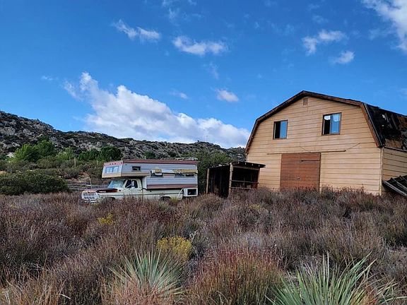 Probate sale. Home with deferred maintenance. Not habitable for humans without remodeling or rebuilding. 3 Bedroom, 2 Bath. Roof is open is 3 places. Pest damage. Will require a lot of work. Value is in the land. 5 acres. There is a barn that appears to have fire damage and opening in that roof. This home will sell as is and WILL NOT be cleaned. Cannot speak to the safety of entering this home or barn. DO NOT ENTER HOME OR BARN. Buyer to satisfy self and will be responsible for all removal of items in the structure and on the land including defensible space. Buyer responsible for pest control. This could be a great property for the right buyer. AC, septic and water source unknown. Dirt road and driveway to house.