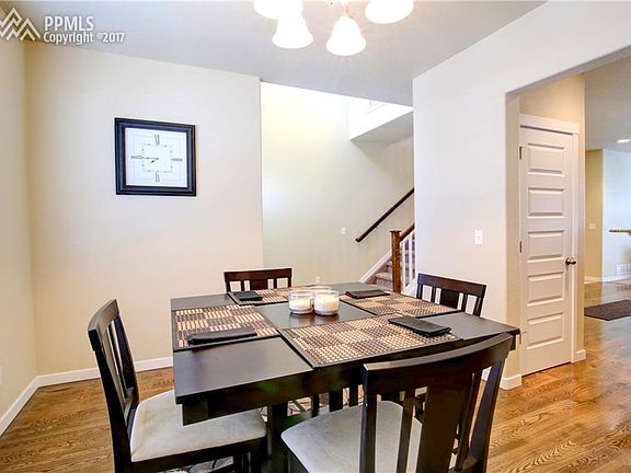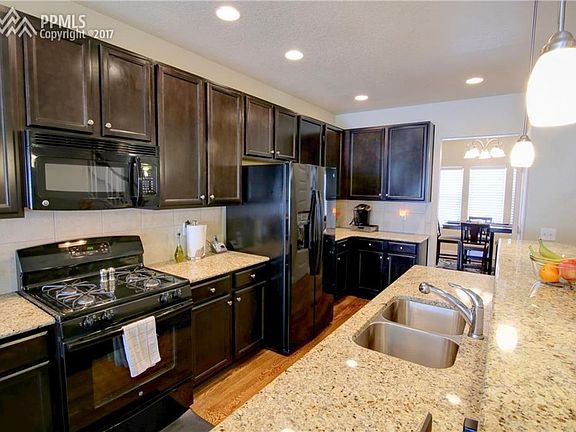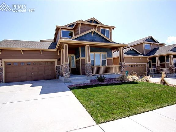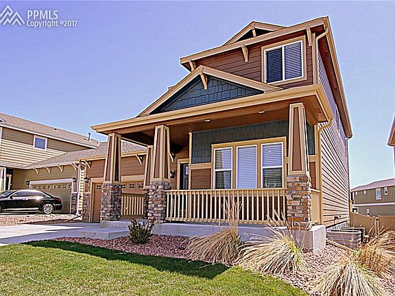 Absolutely gorgeous 4 bedroom, 4 bath home only 16 minutes from Fort Carson or Peterson AFB! This home has it all - slab granite, stainless steel appliances, 42-inch cabinets, hardwood floors, fantastic views of the mountains, and a master suite with an adjoining 5-pc bath and walk-in closet. Central AC & a humidifier complete this home. Don't miss the large front porch and great back deck - Pikes Peak & Cheyenne mountain views! Separate dining room, tile in all bathrooms and laundry room - everything is upgraded! Brushed nickel fixtures, ceiling fans, and gorgeous green grass adorn this home. Very well and meticulously maintained.