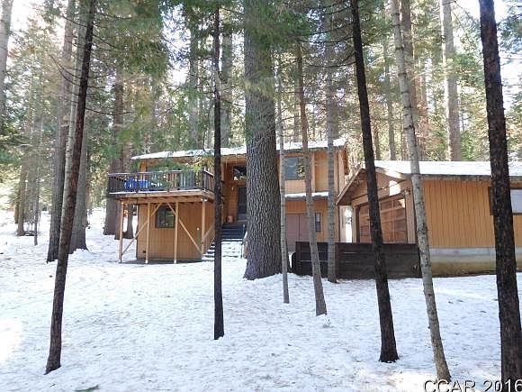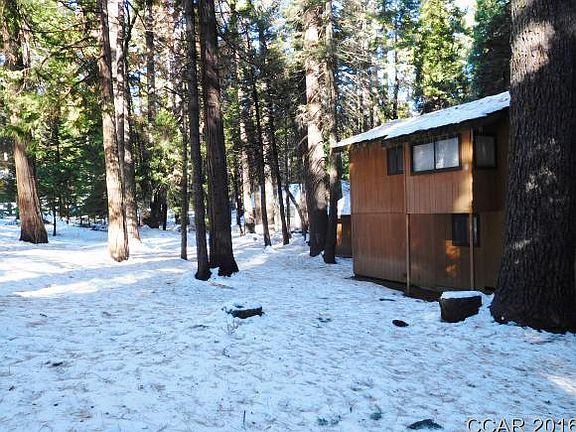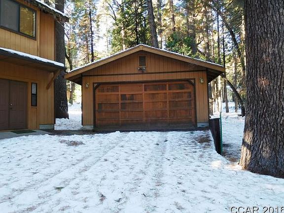 Ready to enjoy! This 3 bedroom/2 bath cabin is located on a level half acre lot on a quiet road in Big Trees Village. Beautiful slate flooring throughout the entry way, kitchen, living room and both bathrooms. New laminate in all bedrooms. Open living room/dining/kitchen and large master suite with bathroom. Below are two bedrooms and one bathroom. Also, on ground level there is a workshop/bonus room with laundry and lots of storage. Large detached two-car garage for your toys.