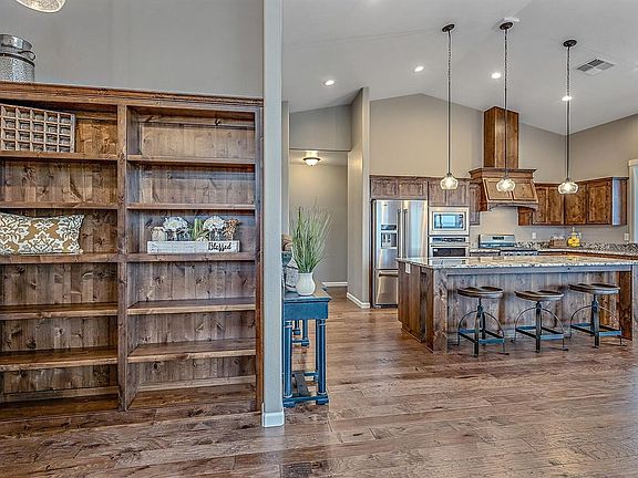 - Interior: Island, Alarm, Dry Bar, Ceiling Fan(s), Garage Door Opener