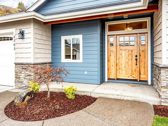 New Construction home with views. A plethora of upgrades featuring a custom kitchen w/knotty alder cabinets, custom shelving throughout, large breakfast island/bar, chiseled edge granite counters, pendant lighting, custom vent hood, crown molding, Maytag stainless appliances, gas range/oven plus additional convection wall oven and micro, French door refrigerator, walk in pantry. Spacious great rm. w/vaults, recessed can lighting, multi-tone paint, engineered-hand planed wood floors, base-molding, custom doors, rubbed bronze levers, craftsman style trim, full window wraps. Master features French doors w/full light glass, gas fireplace, large bathroom, separate double sinks, custom shower w/travertine tile, lots of linen space, walk in closet w/custom shelving. Large laundry rm. w/additional cabinetry and more granite. Custom book case, hall tree, split floor plan, cultured stone accents, craftsman style beams, covered patios, fenced/landscaped. Near Asante.