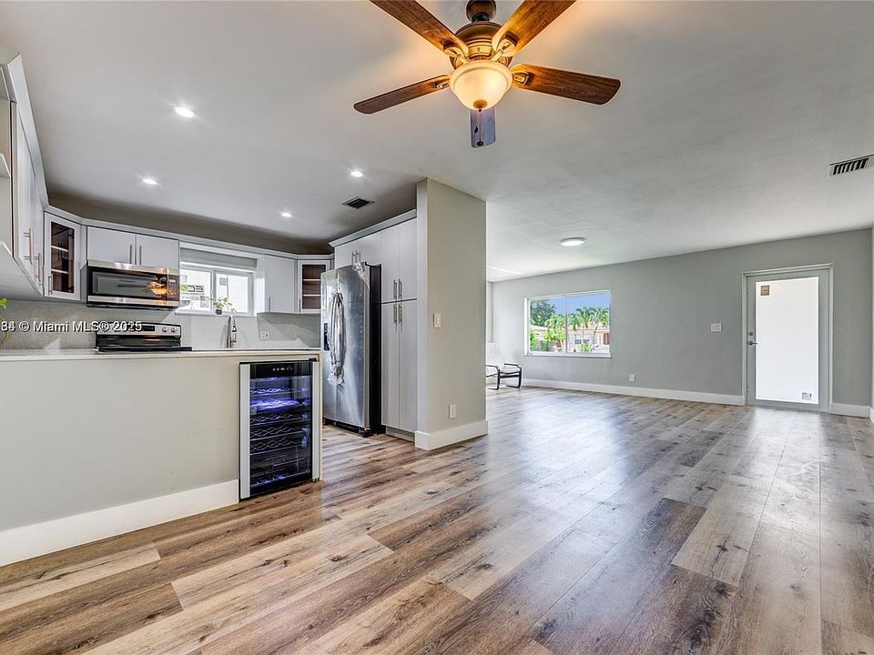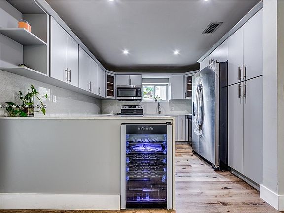Upscale bright bungalow minutes from Gables, Grove, and Brickell. Features include open floorplan, wood floors, spacious rooms, glass-enclosed showers, wine refrigerator, electronic locks, LG washer and dryer, and Nest thermostat. Walk to shops, restaurants, parks, and public library. 3rd bedroom can also be sued as an attended living area, den, or office (with a separate entry door). Brand new GE refrigerator. Fully fenced small back yard (pets permitted) with patio, hammock, and Mamey tree, (bbq grill permitted). Water filtration system installed. All hurricane window and doors. Security system available.