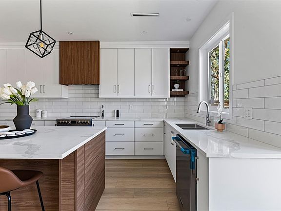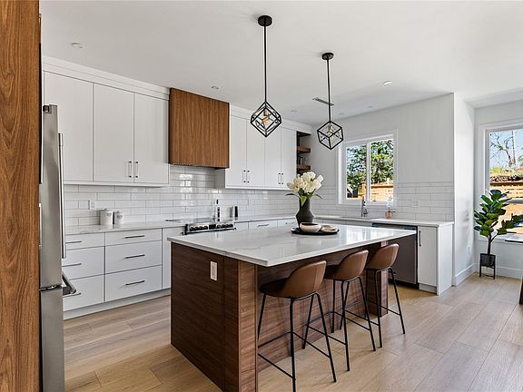 This newly constructed 4-bedroom, 3-bathroom home built by Cameroon Developments is equipped for all of your needs. The main floor has an open-concept kitchen, dining and living area that is filled with tons of natural light leading out to a covered patio and fenced yard. The gourmet kitchen has S/S appliances, spacious kitchen island, quartz countertops and integrated floor and cabinetry lighting that elevate the space. The living room has a cozy electric fireplace with an adjacent dining area surrounded by windows. A separated laundry room includes sink and built-in storage and cabinets, as well as a powder bathroom and bedroom or office space just off of the entry. The primary suite offers a spacious walk-in closet, covered patio as well as a spa like ensuite bathroom with a double vanity sink, soaker tub and standalone shower. Additionally, the home offers a separated 1-bedroom suite with access from the side of garage.