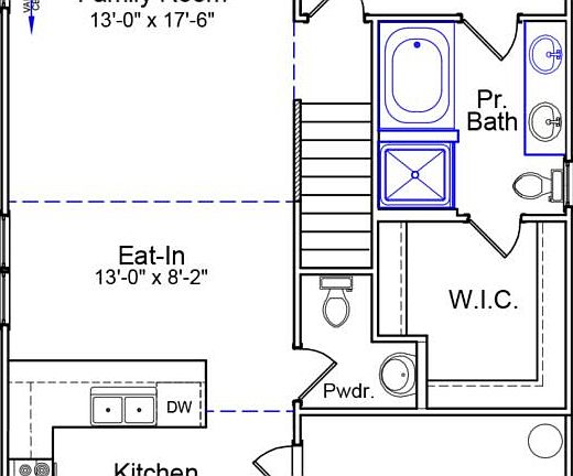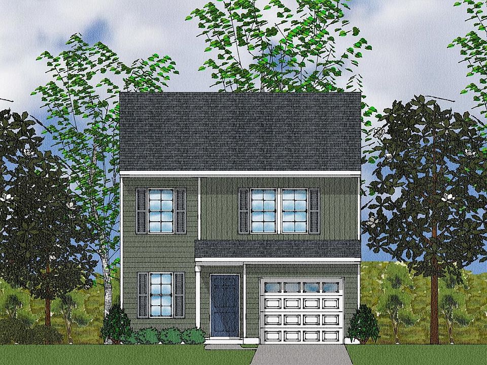 The Evans is a four-bedroom, two-and-one-half-bathroom home featuring the primary suite on the main level. The open layout includes a vaulted ceiling in the great room and a beautiful granite kitchen countertop with a gas range! The primary suite is complete with a separate shower and a soaking bathtub, dual sink vanity with quartz countertops, and a large walk-in closet. The second level has three secondary bedrooms and a hall bathroom. Outdoors, enjoy the covered patio and a shed for additional storage.
