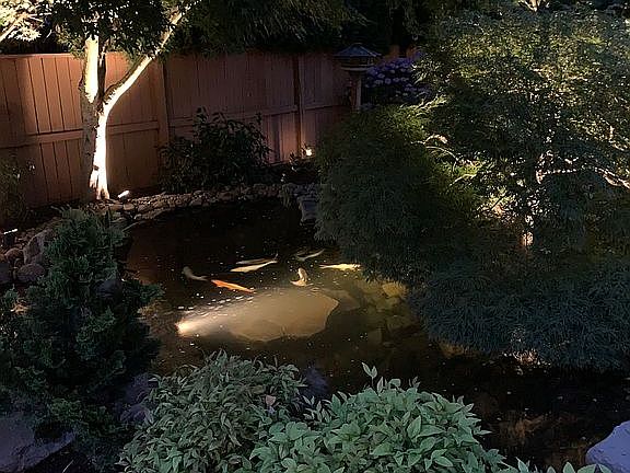 Beautiful well kept hm in Woodscape was JR Loney 2001 Tour Home. Stunning 2 story foyer w/ formal LR & DR w/tall tray ceiling & lg wdws. Gourmet kitchen has island w/gas cooktop, granite cntrs, cherry cabs, ss appls, big pantry, desk. Breakfast nook. Big FR w/lots windows that looks over beautifully landscaped yard w/concrete patio & stunning lighted water feature. Top floor has Master ste w/lg WIC. Master BA has lg tub w/tile & travertine flrs, 3 BRs & BA w/dual sinks & 2 linen closets. Lots of storage.