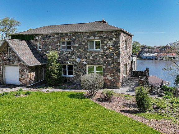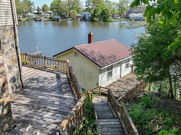 This stunning lakefront home is situated in an unbeatable location, directly across from Indiana Beach amusement park, and features 150 feet of breathtaking water frontage. Boasting four bedrooms in the home and 2 over the boat dock and three bathrooms, this spacious property offers ample room for all your needs so you can enjoy all the lake has to offer. One of the highlights of this property is the large boat dock, complete with bedrooms above, offering a peaceful retreat after a day on the water. The outside yard is beautifully landscaped and features a unique rock fence with gate, providing both privacy and security. As a historic lake home, this property is full of character and charm, with two cozy fireplaces adding to the ambiance. Whether you're looking for a permanent residence or a vacation home, this lakefront gem is sure to exceed your expectations. Don't miss out on the opportunity to make this amazing property your own!