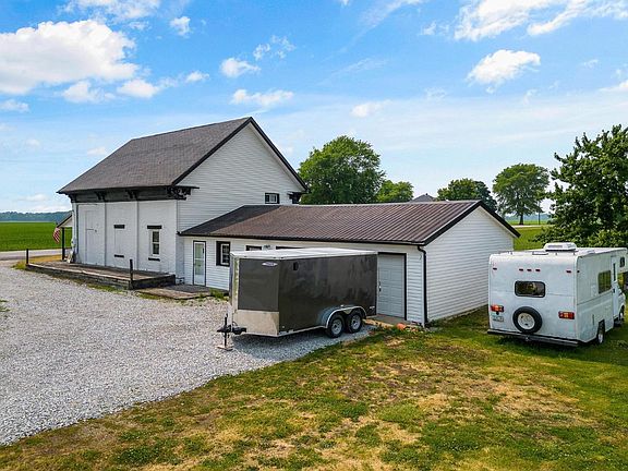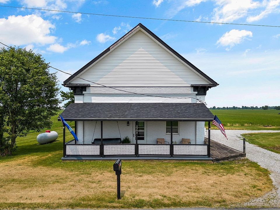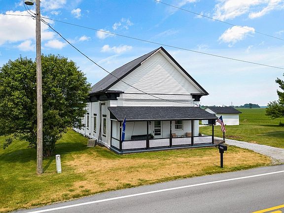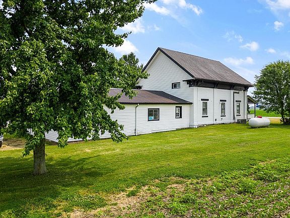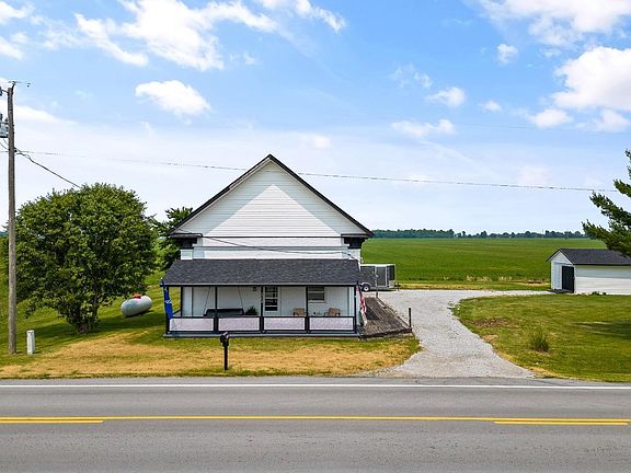 If you are wanting to live in the country and have the privacy and serenity that lots of acreage will provide without the cost, here is your opportunity. This home sits on 1/2 acre but is surrounded by farm land. You can sit and swing on your front porch and watch the sun set in the evening . Once a schoolhouse, it now provides an updated kitchen and bath as well as two living areas. It also has a 2 car garage and large shed. The attic could provide much more square footage if completed.