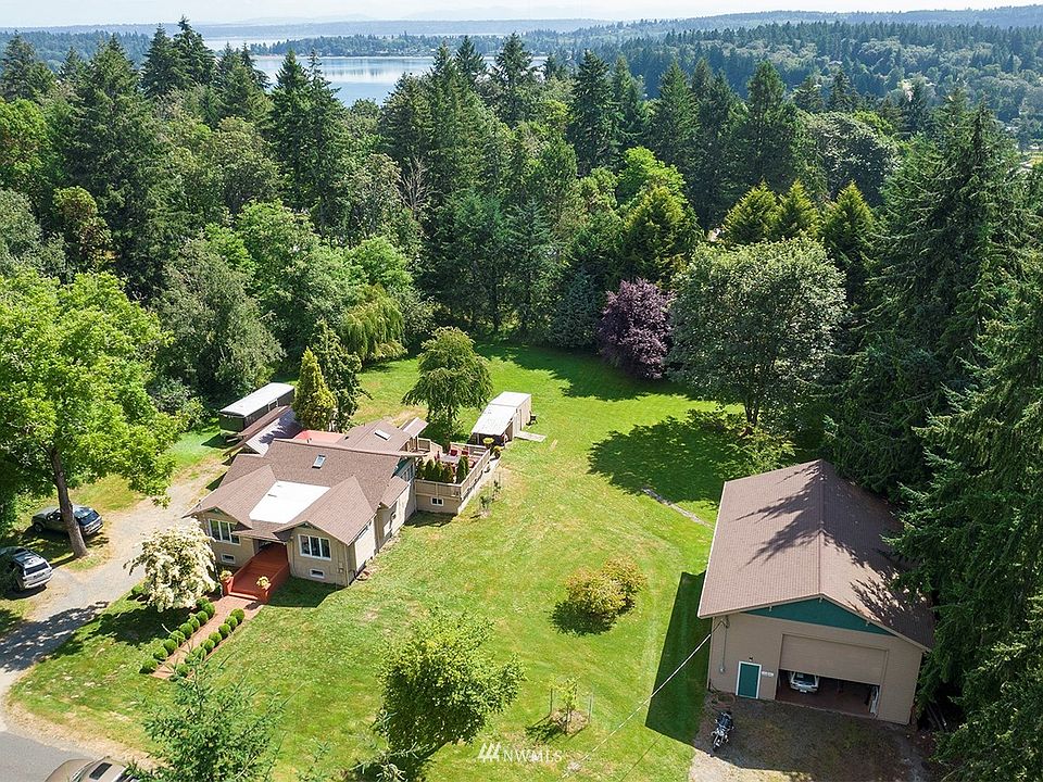 Located in upper Burton on a shy acre, this 1920's bungalow is filled with light & charm. Spacious living room with gas fireplace opens onto the dining space & updated kitchen with light wood cabinetry, brilliant for entertaining! French doors lead to the concrete deck that overlooks the beautiful yard, wonderful for gardening. 2 bedrooms + 1 bath on the main. Lower level with private entrance, large living space, a non-conforming bedroom + 3/4 bath. It makes for a great guest suite. Professional detached artist's studio/home office has a 2 car garage with a 2nd floor for future expansion (1,408 sq ft + loft sq ft). A 3rd detached studio (300 sq ft) expands the possibilities. Walk to coffee, beaches, groceries, post office & transit.