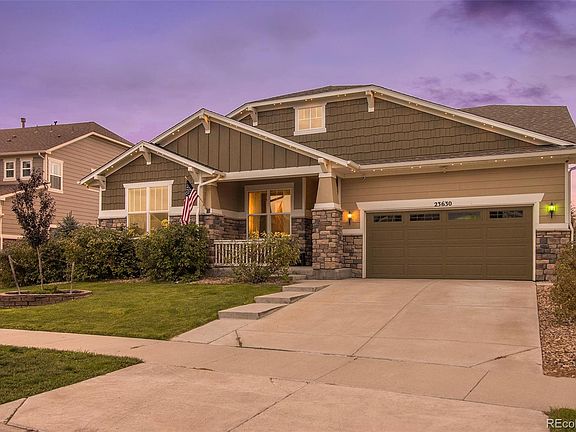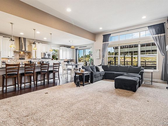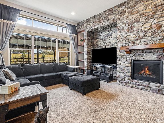 Beautiful ranch with 3 main level bedrooms, 4 bathrooms, finished basement and a 3 car garage. Elegant entrance. Great room style floorplan with 11' ceilings, high-end engineered wood flooring, custom stone wall, gas fireplace, built-in shelves, entertainment area, ceiling fan and recessed lighting. Gourmet Kitchen with extended cabinets, staggered upgraded cabinets, upgraded glass cabinets, granite and quartz counters, pantry, large island, gas cooktop, stainless refrigerator, double ovens, dishwasher and microwave. Spacious office with etched glass French doors and a ceiling fan. Luxurious owner’s suite with crown molding and ceiling fan. Elegant ensuite with custom shower, relaxing soaking tub, two separate sinks and 2 walk-in closets. Finished basement with two recreation rooms, theater room, kitchen/bar area, full bath, workshop and storage room. The basement is finished with high-end engineered wood flooring and 9’ ceilings. Free standing gas fireplace, pool table, ping pong table, game table, built in smoker and work bench are all included. Possible in-law or guest suite. Fully fenced back yard with two large decks overlooking open space, pergola, private hot tub (included), pear tree, sunflowers and pumpkins. Front and back yard sprinkler system. Central air conditioning. Gemstone Lighting (included) never fool around with holiday lighting again. You choose the lighting from your smart phone. Whole home humidifier. Fully paid off solar system saves $$$.Wonderful location approximately 4 miles to all of the amenities of Southlands Mall and approximately 5 miles to historic downtown Parker. Both offer many fun events including wine walks, farmers markets and music in the park. Jump on E470 and avoid heavy traffic with EZ access to DIA and the mountains. Just steps to neighborhood parks, playgrounds and trails. Beautiful neighborhood pool, parks, playgrounds, bike trails, tennis courts and many fun events.