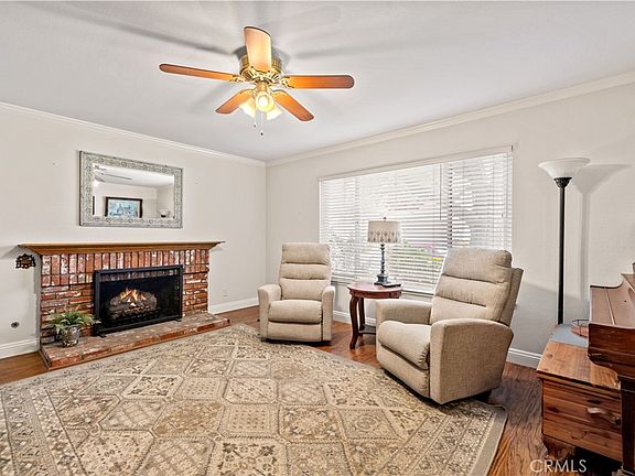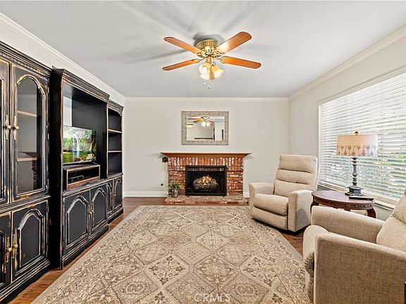 Your chance to own a stunning 4-bedroom, 2-bathroom single-story home in the Valencia Del Valle neighborhood is here—with solar and NO HOA! Upon entering this beautiful home you'll be captivated by the warm wood-style flooring that flows seamlessly throughout the living areas and kitchen. The front living room features a cozy brick fireplace, elegant crown molding, and a large window that bathes the space in natural light. The recently remodeled kitchen boasts an open concept that merges beautifully with the dining area. In the kitchen you’ll find modern white cabinetry, farmhouse kitchen sink, stainless steel appliances, kitchen island, a breakfast bar, ample storage, plus a bay window that overlooks the backyard setting. The family room is spacious, enhanced with crown molding and sliding glass doors that lead to the backyard. Double door entry to the primary bedroom with a slider to the yard and private en-suite bathroom that has been stylishly updated with built in dressing vanity offering ample storage, large step-in shower, custom honeycomb tile, dual shower heads and updated fixtures. Generously sized secondary bedrooms, including one that offers custom built-in cabinetry, perfect for a home office. Outside, the backyard is an entertainer's dream with an open-beam covered patio, a cozy firepit conversation area, plus a sparkling pool and spa with custom hardscape. Located close to shopping, paseos, restaurants, and award-winning schools, this home blends convenience with elegance. Don't miss your chance to make this your new dream home!
