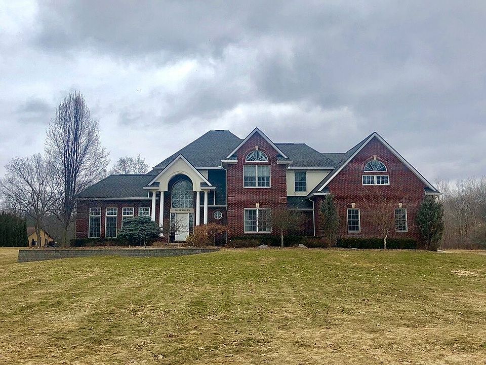 JAW DROPPING CUSTOM COLONIAL ON NEARLY 2 ACRES OF TRANQUIL SCENERY. THIS HOME HAS BEEN IMMACULATELY MAINTAINED. HARDWOOD THROUGHOUT MOST OF FIRST FLOOR. 2 STORY FOYER OPENS TO FAMILY ROOM AREA WITH VAULTED CEILINGS. DEN WITH AMAZING COFFERED CEILING. KITCHEN FEATURES GORGEOUS GRANITE WORK, CUSTOM CABINETRY, ALL APPLIANCES INCLUDED, AND BREAKFAST NOOK. LIVING ROOM HAS BEAUTIFUL GAS FIREPLACE, AND DOOR WALL TO BACKYARD. HEAD UPSTAIRS TO THE HUGE MASTER SUITE WITH PAN CEILING, RECESSED LIGHTING, WALK IN CLOSETS, AND MASTER BATH WITH FLOOR TO CEILING TILE SHOWER AND JACUZZI TUB. TWO ADDITIONAL SPACIOUS BEDROOMS. ANOTHER SPRAWLING BEDROOM/BONUS ROOM WITH HARDWOOD AND BALCONY OVERLOOKING YARD. CUSTOM HIGH END BASEMENT WITH DELUXE FULL BAR FEATURING GRANITE COUNTERS AND APPLIANCES INCLUDED. CUSTOM COPPER CEILING. SEATING AREA WITH HUGE PROJECTOR SCREEN. HALF BATH IN BASEMENT.RELAX AND ENJOY THIS AMAZING YARD WITH STAMPED CONCRETE PATIO AND ADDITIONAL PATIO AREA. THIS HOME IS HAS IT ALL!