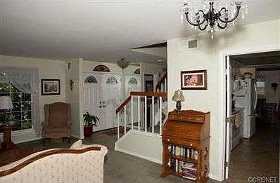 Located in the central area of Valencia this home features 4 bedrooms and 3 baths with 2,055 sq. ft of living space. The living room has a beautiful colonial fireplace, with a breakfast nook overlooking the garden. The kitchen has corian counter tops, newer appliances, and plenty of cabinet space. The spacious family room has a stone fireplace of stunning elegance, canned lighting, 7.1 surround sound wiring configured and direct access to backyard. The staircase to second floor is custom-built with designer handrail and carpets. All bathrooms have been tastefully redone. The home has dual pane windows, copper repipe and newer roof. Master bedroom suite features a reading area and walk in closet. Good sized backyard with plenty of room to garden, barbeque or simply enjoy a quiet area. Close to park, schools, shopping, and hospital. No HOA or Mello-Roos. Standard Sale.