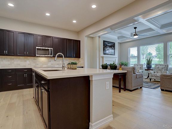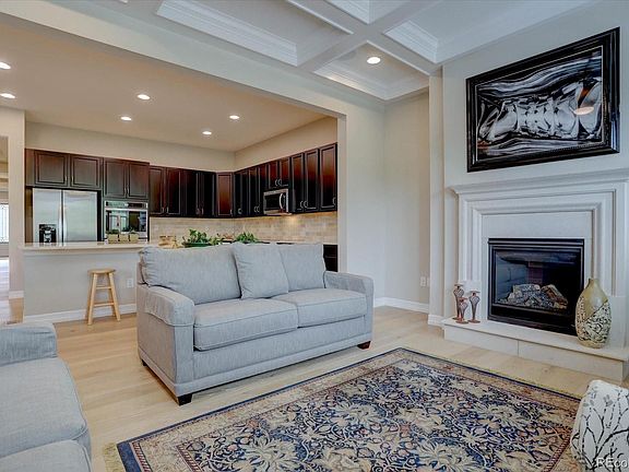 Welcome to this stunning single-family ranch home located in the prestigious Inspiration community. With 3 bedrooms & 4 bathrooms, this spacious home offers a generous 2,745 sqft of living space, with 12' ceilings, 10' doors, & engineered hardwood floors throughout. The open floor plan, numerous windows, & oversized rooms create a space that is light & bright, a perfect place to unwind & entertain guests. The gourmet kitchen boasts stainless steel appliances that include a full-sized double oven, & an induction cooktop. This lovely kitchen offers beautifully upgraded soft-close cabinets & drawers, quartz countertops, & a spacious center island with seating open to an inviting & oversized eating area (can accommodate a table for 10 people) & a family room with a cozy gas-log fireplace. The primary bedroom suite with trey ceiling & ceiling fan & an en suite bathroom that has an extra-large shower, dual vanities, a soaking tub, and an oversized walk-in closet. With the tankless Water Heater, you'll never run out of hot water! The other two large bedrooms have en suite bathrooms as well. The large laundry area has lots of counter space & cabinets for storage, a utility sink, an entry to the garage, and a coat closet. The three-car garage is insulated & finished offering lots of storage possibilities. The backyard oasis boasts a large covered patio with a fireplace. Enjoy the benefits of OWNING THE SOLAR PANELS that minimize utility costs. The large 2,726 sqft unfinished basement provides a blank slate ready for your personal touches. The Inspiration community is known for it's well-maintained common areas & beautiful landscaping, parks, pool, & dog park. Ideally located close to E-470, I-25, Streets of Southlands, & Downtown Parker, you are seamlessly connected to shopping, restaurants, parks, and trails. This home is a must see to appreciate the care the owners have taken in maintaining this property.