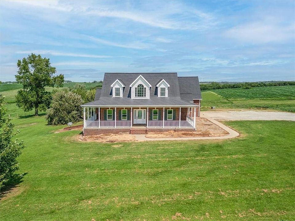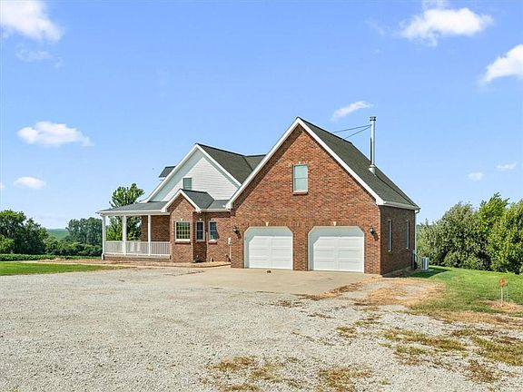 Tucked into the rolling countryside, this stunning 4+ bedroom, 4 bathroom home offers peaceful rural living without sacrificing space or style. Sitting proudly on 6 acres, this brick-and-siding charmer features a spacious wraparound porch perfect for coffee at sunrise or watching the sun set over open fields. Inside, you'll find generous living spaces, a functional floor plan, and all the room you need to grow or entertain. Whether you're hosting holiday dinners or enjoying a quiet evening, the warmth of this home welcomes you at every turn. The finished attic adds even more flexible living space—perfect for a playroom, office, guest area, or cozy retreat. The attached two-car garage provides plenty of storage, while the wide-open acreage invites endless possibilities—gardening, hobby farming, or just soaking in the quiet of nature. With no close neighbors, you'll enjoy privacy and views for days. This is the kind of place where memories are made—where fireflies dance at dusk and the stars shine a little brighter.