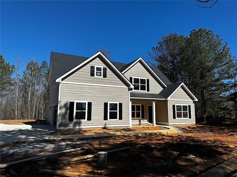 The JAMESTOWN features 4 Bedrooms and 3 Full Baths. - Owner's Suite with Vaulted Ceiling and additional secondary bedroom with full bath are on the MAIN LEVEL, Open Family Room features a vaulted beamed beamed ceiling with wood burning fireplace, Lovely Kitchen with Central Island with Sparkling White Quartz Countertops and Tile Backsplash, Breakfast Area and separate dining room. Owner's Suite has double closets, a Tiled bath with a soaking tub and separate shower. Upstairs you'll love the oversized secondary bedrooms, full bath and BONUS ROOM! NEW HOME WARRANTY - NO CITY TAXES - NO HOA and a lot of privacy. High efficiency Zoned HVAC system along with Spray Foam Insulation in the attic help lower your energy bills. This home also features The TQH Smart Home Package powered by Skyline/Brinks Home Security. Situated on wooded 5.0 Acre Lot only minutes from Downtown Tallapoosa