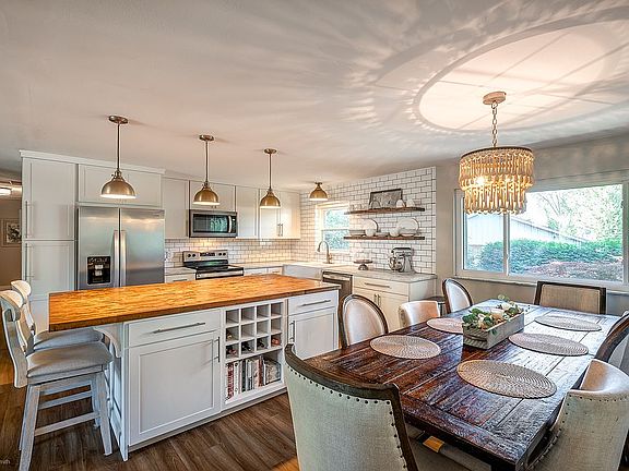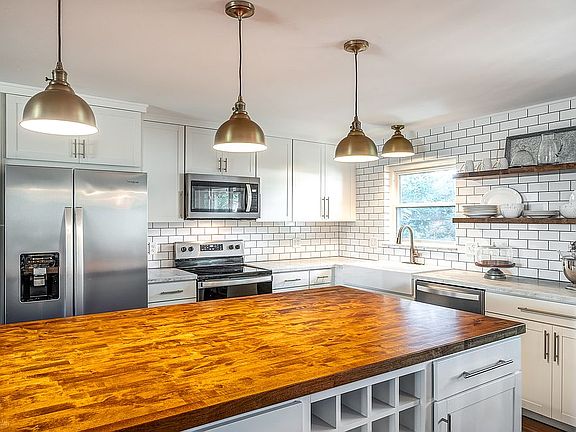 Ah-mazing kitchen remodel that would make Chip and Joanna proud! This stunning ranch offers an open floor plan and quality workmanship! Inside, LVP flooring begins in the living room and continues throughout the living areas. Boasting a huge island with butcher block, open shelving, stainless appliances, farm sink, trendy pendant lighting, and sharp backsplash, the kitchen is a perfect 10! Ideal for enjoying friends and family, a spacious dining room with updated lighting opens to the family room, complete with woodburning fireplace and access to the backyard. Down the hall, the master features hardwood floors and an en-suite bath. Two additional bedrooms with hardwood, a large laundry room with sink, and a full bath complete the plan. Outside, you'll appreciate the covered patio, side-entry garage, and fenced yard! Other updates include: roof (2018) and windows/patio door (2019).