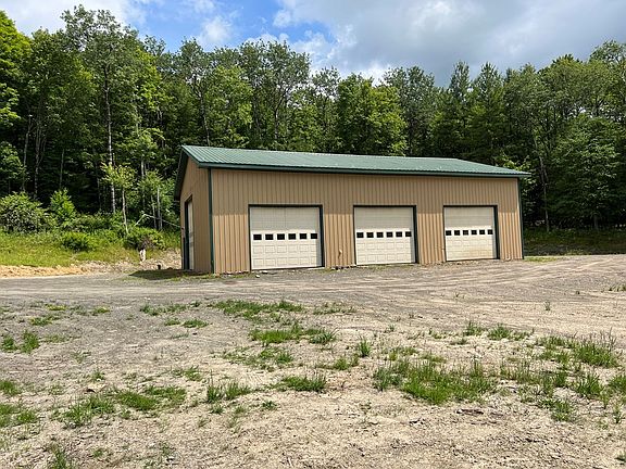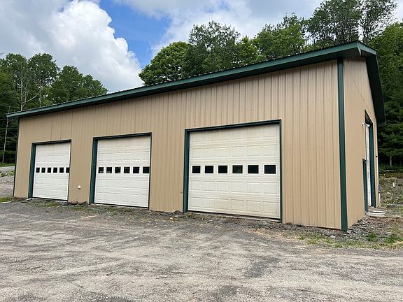 Excellent commercial grade building with all the bells and whistles. Insulated (including the floor) heated w kitchenette, bath w shower and upstairs bedroom or office/meeting room. 2 14' doors and 3 10' doors that are insulated. 2 man doors. propane radiant heat w 200 amp service and backup generator . Gravel lot w truck access all around the building. 3 rv hookups (septic permitted for 4). Several potential spots for a home or subdivision. Take some trees down for a nice long view. Well is capable of 35gals per min output. 13 beautiful fairly level wooded acres with 2 open around the Shop building. Large enough to park a 53' tractor trailer in or just fill it with your collectables. Great facility for any contractor or car enthusiast. Owner would consider leasing to a hunting group. you could have your camper right inside the building or at one of the other outside spots. Owner just signed a no surface disturbance gas lease. 15% royalty. Will transfer to buyer.