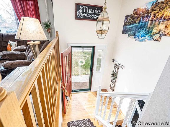 This bright, spacious 5 bedroom home is complete with a fireplace, wood floors, Schroll cabinets and features a hot tub/jacuzzi, maintenance free deck with electric awning and a large workshop equipped with electric fireplace. All of this sits on nearly 1/4 acres in The Bluffs subdivision. The completely remodeled laundry room is a families dream and a cozy fireplace can be used to gather around with family and friends or alone with a book.