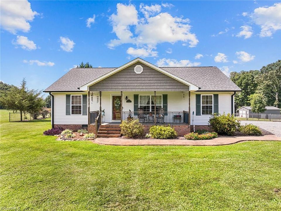Beautiful & Charming, one owner, one level, ranch style home located in the most serene setting that you could imagine! Mature landscaping graces the exterior of this rare gem in Kernersville. Relax on the covered back deck, sip coffee on the front porch or cool off in the sparkling swimming pool. Fenced yard creates perfect space for pets to play and the detached garage is wired making it a great workshop/storage area. Roof, HVAC, pool pump & liner all recently replaced. Wonderful layout with open living areas and split bedroom floorplan. You must see this great property! See property located at 2360 Pine Meadow Dr for opportunity to own the entire package equaling 2.8 +\- acres with barn, multiple buildings and two dwellings. Agents-see agent only remarks.