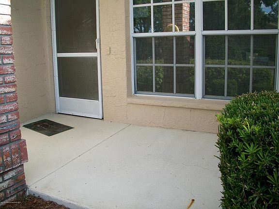 Located in a very quiet neighborhood, this end unit villa features 2 bedrooms, 2 baths and a 2 car garage. Cozy front porch and rear patio add nice outside space. Laminate and tile flooring throughout.. Corian counters in kitchen. 2 solar tubes. Family room off kitchen with pass through. Plexiglass enclosed extended lanai. Master bath has been modified with no step down into shower. Garage features ramp with railing. Surge protector at breaker box. Roof replaced 9/2016, A/C replaced 6/2003. Interior painted 11/18. Looks brand new!