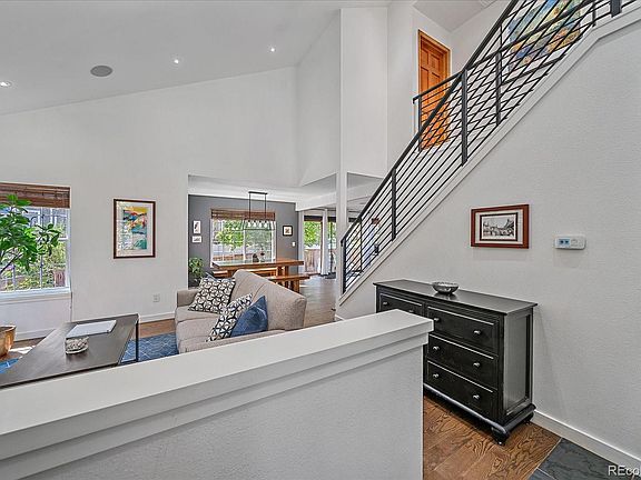 Welcome to the market this lovely 2-story fully updated home located on a quiet cul-de-sac in Charterwood of Lakewood Estates. This home backs to a quaint piece of green open space professionally managed and maintained. Every detail of this home offers tasteful functionality & modern technology while being the center of your serenity - from the xeriscaped zen like gardens & waterfall with night lights, to the wood burning fireplace and fully loaded theatre room. This home is move-in ready with a primary suite, junior suite and 2 additional bedrooms + loft. Every space here is open, inviting and cozy. Timeless hardwood floors line the main level while the newer carpet in the bedrooms provide additional comfort. The kitchen is loaded with quartzite counters, Kraft-Made cabinets, Stainless Steel Kitchen-Aid refrigerator, dishwasher & microwave, GE profile induction & convection range, in-ceiling Polk- Audio in the kitchen + dining & living areas. Features to boast about - New LG ThinQ washer & dryer, Apple Homekit, Lutron enabled smart home - smart front door lock & garage, smart thermostat. The theater is well equipped with built-in dolby atoms 9.1, 8’ acoustic screen & 1080p projector. Lastly, this home uses a Navien Ultra-efficient condensing tankless water heater providing endless hot water to the whole house and was also built with an oversized 2 car garage including ample storage. This has been a well loved, well maintained home with only 2 owners. With quick access to the mountains, walking distance to a pickleball court & playground, and nearby Bear Creek State Park and the world famous Red Rocks amphitheatre, this one checks all the boxes - Welcome home!
