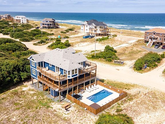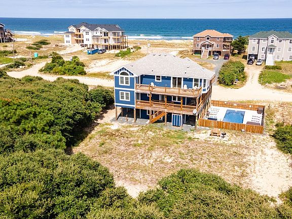 Escape to the 4x4 beaches of Corolla and enjoy wide, uncrowded stretches of sand just minutes from your door. This spacious 7-bedroom, 7.5-bathroom retreat was designed for comfort, convenience, and fun. Every bedroom has its own private bath, including five king suites with upgraded 12” gel memory foam mattresses and two bunk rooms, perfect for kids and guests. The top level a fully equipped kitchen with all new stainless steel appliances, dual dishwashers, a 36” cooktop, and a dining area that flows seamlessly into the great room with fireplace and large TV. Step outside to multiple decks for ocean breezes and stunning ocean views. A loft with a desk and a reading nook offers the ideal spot to work or relax. Mid-level highlights include three king en-suites, a second bunk room, a sitting area, and laundry with 2nd w/d hookup. The ground level is designed for fun with a spacious rec room, pool table, full kitchenette with refrigerator, and a private theater with surround sound—perfect for rainy days or evening movies. Outdoor living is a true highlight: watch the wild horses roam, splash in the pool, lounge in the sun, or unwind in the hot tub under the stars. A charcoal grill and outdoor dining area make it easy to gather for meals after a day at the beach. With a location just a short 4-minute walk to the ocean, this home offers the best of the off-road lifestyle—privacy, adventure, and room for everyone. Whether you’re seeking an off-road retreat, vacation rental investment, or coastal getaway, this property has it all.
