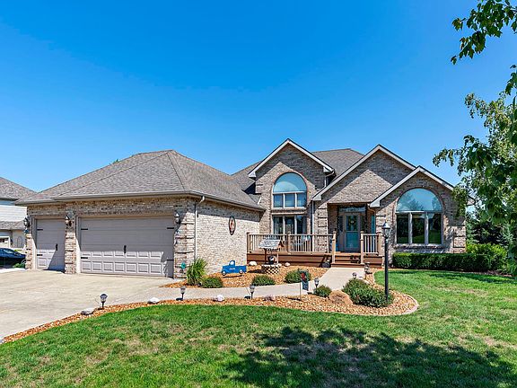 Immaculate Limestone 4 Bedroom home on an oversized gorgeous Lot with lot of mature trees! FULL walk out basement with over 4000 sOq feet of gross living space! The professionally landscaped lot welcomes you to refinished sidewalks that lead to a custom oversized front (and back) composite deck that leads you into the large foyer. Upon entering you are introduced to the large living room with cathedral ceilings, gas fireplace, formal dining room and eat-in kitchen. Split floor plan. All trim is hardwood with 6 panel hardwood doors. Finished walk-out lower level has everything from gigantic family room with gas fireplace, secondary kitchen and a full bedroom and bath! All bathrooms and kitchen updated with corrion and granite counter-tops, HVAC is newer, 3-car garage with 4th garage bay off rear of house perfect for that mower or golf-cart! New flooring in most of the house, professionally painted with all newer fixtures added. Won't last and ready for you to move in!