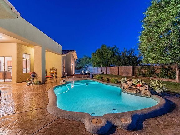 Custom built, exclusive gated community, single level, open floor plan. All 4 bedrooms complete with wood floors and walk in closets. 3.5 bathrooms. Front door opens to a wonderful great room with built in stone facade media wall, electric fireplace, and art niches. Spacious room that can be used as a formal dining room, or bar with pool table also has wood flooring and coffered ceiling. Elegant den area with fireplace and coffered ceiling, fan, and wood flooring. Custom kitchen with all the upgrades including center island with breakfast bar, stainless steel appliances, dual ovens, gourmet fridge and freezer, gas cook top, granite counter tops with full granite backsplash, staggered cabinets, built in desk all laid out in a design any gourmet chef will love! Master suite has sitting room/den, backyard exit leading to spacious resort style backyard and master bath with whirlpool tub. Huge master closet!! Backyard complete with pool, grass area, and plenty of room for entertaining.