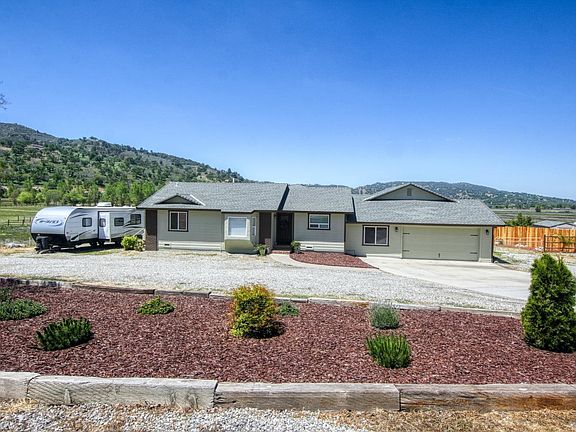 Stunning lake views,great location on the valley floor,RV parking with 30 amp 120 volt hookup,3 stall barn and so much more! Remarkable on of a kind 4 bedroom 3 bath plus office area. This home offers 1.02 acres with an open deck,covered patio and cobble stone courtyard in back.Room to entertain your friends from sunrise to sunset! Enjoy your horses or make the 3 stall barn your workshop. New concrete siding,newer 1200 gallon concrete septic tank and leach lines and tank less water heater. Great room has vaulted ceilings,new tile flooring and huge windows to see your amazing views all day long. Kitchen was remolded with custom cabinets, butcher block island with cabinets,granite and new flooring. New dishwasher and 200 amp panel upgrade in 2018.Fenced backyard and pasture. Left over cobble stone in the backyard will stay with the home but the boulders in the center of the backyard do not stay with the home.Property line goes past the gate in back pasture.All carpet to be replaced.