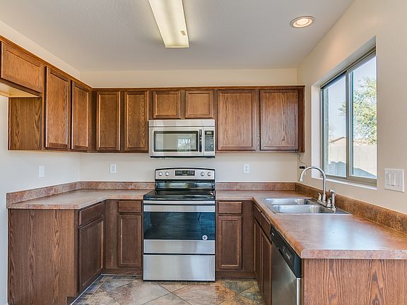 Single-story home on a corner lot with large backyard - empty canvas waiting for your inspiration, with space for a pool or extended patio! Inside, the Living room flows into the the dining area just off the kitchen, which sports stainless steel appliances (new range and dishwasher!). Other recent renovations include new carpet throughout and fresh interior paint. Close to Walmart, Sundance Park, and I-10 access! All Opendoor homes come with a 30-day satisfaction guarantee and one-year premium warranty. Terms and conditions apply. Open House: Mon-Sun, 6am-9pm