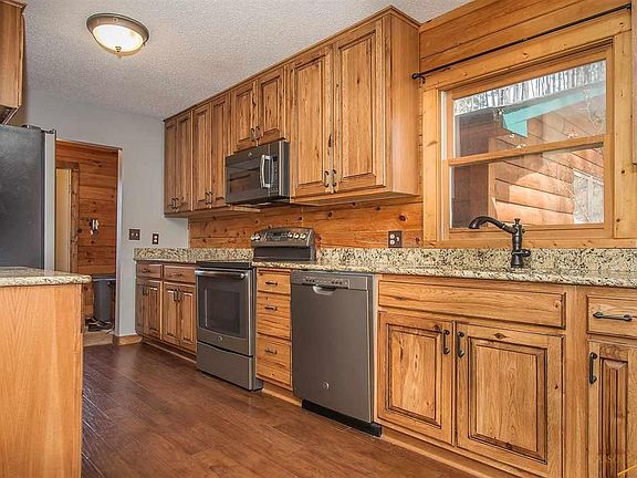 This magnificent log home is located in a quiet neighborhood just minutes from Rapid City. The expansive deck is the perfect place to enjoy a cup of coffee while basking in all of nature???s glory. The recently renovated kitchen is complete with new cabinets, granite countertops, stainless steel appliances and hardwood flooring, which flows throughout the majority of the main level. Great attention to detail was paid in the newly remodeled main level bathroom which features a gorgeous walk-in tiled shower with glass enclosure. In addition to a main level bedroom, the spacious master and 2nd bedrooms are located on the upper level, both of which have scenic views of the Hills. The walk-out lower level includes the 4th bedroom, full bathroom, laundry room and family room with wood-burning stove. Come take a look at what could be your own haven in the Hills!