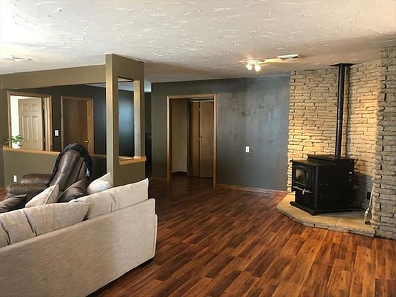 Private Country setting with this spacious ranch home and shop on 6 acres m/l. The home has large open spaces and could be used as a 4 bedroom and 2.5 bath floor plan. There is a large open living room that leads to a huge kitchen and dining space combo. The master wing has a large walk in closet and full bathroom with both a shower and a jetted tub plus double sinks. There are 2 other bedrooms (1 currently used as a game room) with both the utility room and 2nd full bathroom close. Nice little space for an office too.