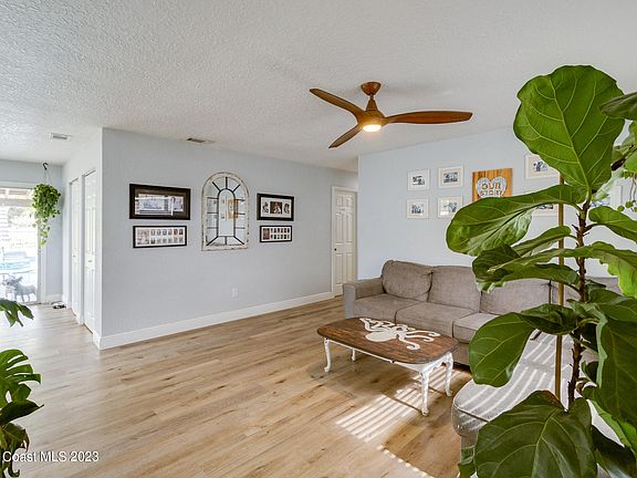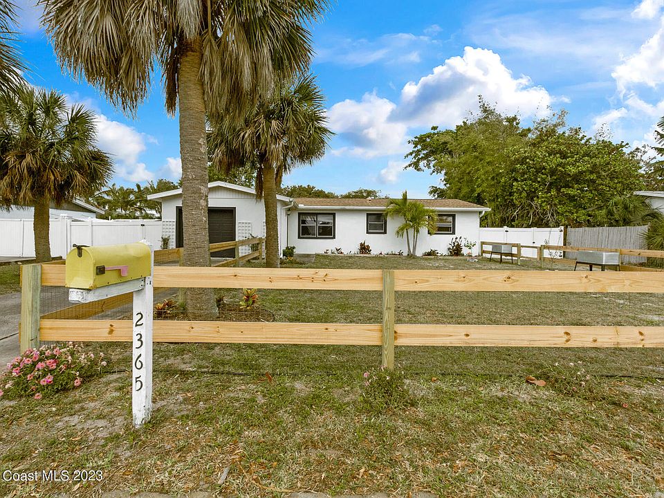 A beachside tropical paradise awaits in this tastefully remodeled home! Nestled on a generous .24 acre lot, this tropical gem boasts 4 bedrooms, 2 bathrooms, and a brand new 2023 roof! The spacious kitchen has stainless appliances, a blend of butcher block and granite countertops, a large island, and ample storage and workspace. Relax or entertain with ease on the back deck crafted from durable composite wood, complete with a shady pergola that overlooks a stunning 2021 salt water pool encased by a pavered deck. Enjoy the luxury of spacious front and back yards, accented by 20 fruit trees serviced by a convenient drip system. Safety is enhanced with hurricane shutters! Just a minute to the beach, this oasis is also close to top-rated schools and prime shopping venues. Come see it today!