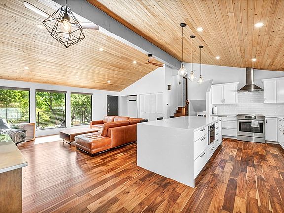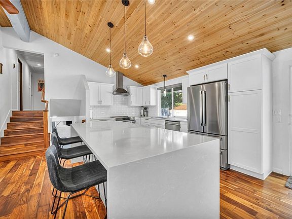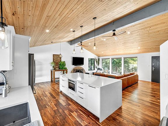 Discover this mid-century modern gem! Beautifully renovated three bedroom, two and a half bathroom, plus office, energy efficient home with gorgeous views of Virginia Park and Lake. The great room is the heart of this home with an abundance of natural light, elegant hard wood floors and light fixtures, vaulted ceilings, kitchen island with waterfall counter, and a cozy fireplace. This home combines timeless design with modern conveniences, making it the perfect retreat for both relaxation and entertaining.