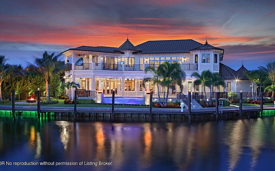One of a Kind custom estate home on a point lot with turning basin and 210' of protected deep water dockage. If you have a Sportfish/Motor Yacht up to 90' and a large Center Console then this is the house for you! This home features marble and wood floors, coffered and volume ceilings, all en-suite bedrooms, a guest quarters with kitchenette, panoramic views from most rooms, Chef's kitchen with top of the line appliances and large Butler's pantry, an elevator, a tackle/safe room, an office with custom built-ins and wood floors that has a full bathroom and walk-in closet to be a 6th bedroom. Other amenities include a custom wet bar with Onyx tops, a 60 KW Kohler generator, Crestron system, exterior camera system, two tank-less gas water heaters with an electric backup... (See Supplement)