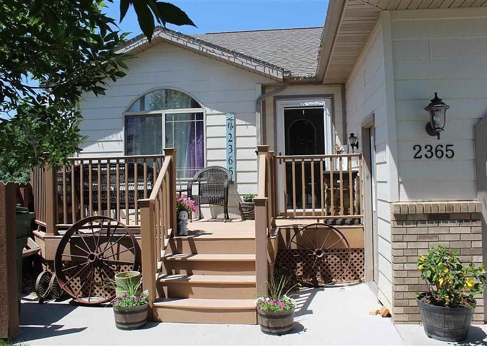 Wonderful single level livings in Sturgis, SD. This is a BIG townhouse with just over 2,300 SQFT of finished space. As you approach the front door you will notice a front porch with a nice sized sitting area. Also worth noting is the concrete driveway and spacious two stall garage. As you enter the entry way is bright and open. Just past the entry way there is a bedroom and a bathroom and then you will find the large kitchen area is there with tons of natural light provided by two large windows and a deck door. Also on the main level is a family room with carpet. Just past the living area you will find the master bedroom with a bathroom and walk in closet. Main floor laundry is a must in a home like this, and this one has it. Moving to the lower level; there are two nice sized bedrooms down here and another bathroom. Also downstairs you will find a wet bar area and another family room. The back of the home has a deck with a few stairs leading to the yard area. The HOA covers snow removal and yard maintenance.