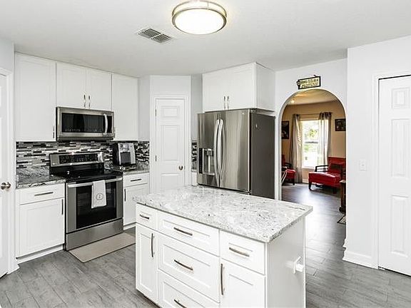 Beautifully updated and move in ready 4 Bedroom family home with sparkling screened pool and large private yard. Recent updates include wood grained plank tile flooring on the main level, new carpeting in the bedrooms, hall and stairway, salt chlorinated pool, upgraded irrigation system, security cameras with a smart lock front door and fresh paint inside and out. The gorgeous renovated eat-in kitchen features an island with plenty of counter space for food preparation and storage. Granite countertops, 42" cabinets, glass tile back splash and stainless steel appliances complete the fresh look. The family room is open to the kitchen and there is a separate living room and dining room too. All the bedrooms are upstairs, with ample sized secondary bedrooms and the spacious master suite with its garden tub and separate shower. The large poolside covered patio creates a great space for entertaining and enjoyment of the Florida lifestyle. Fantastic location with easy access to 429 and major highways, convenient to restaurants, shopping and minutes to Jason Dwelley Sports Complex for familly outdoor recreation.