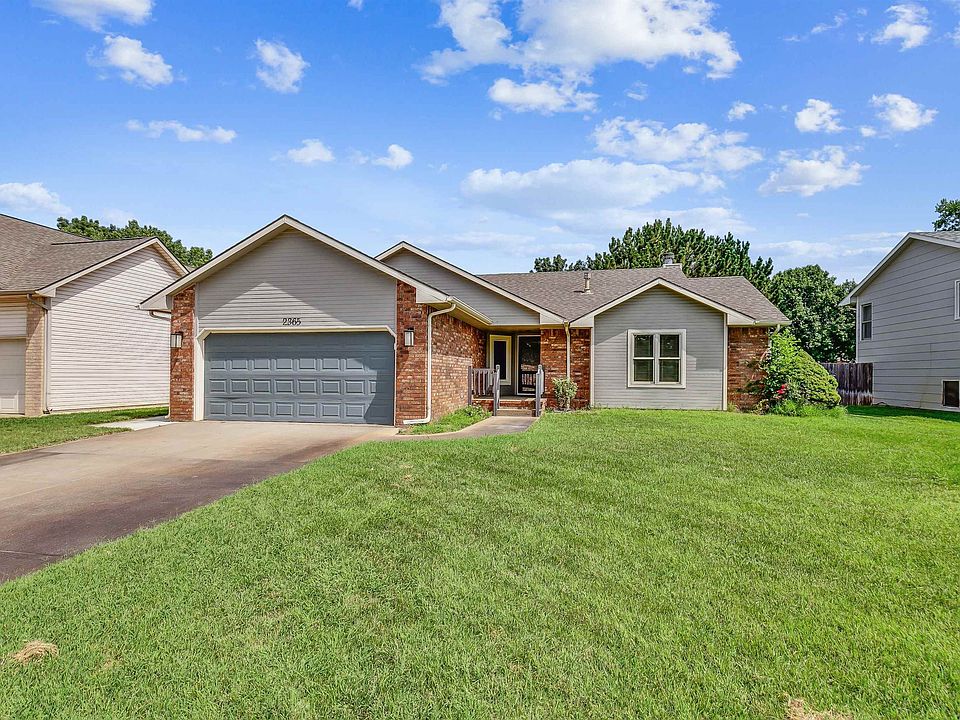 3 Bedroom, 3 Bath ranch home with 2 car garage located in a great west Wichita location. Walk into a tiled front entry to the large living room with gas fireplace and vaulted ceilings. Dining area is between living room and kitchen, creating a large area for social gatherings. The fully applianced kitchen has an island and laundry area. The three bedrooms on the main floor include the master suite with walk in closet and attached bathroom. Master bathroom has shower, separate jetted bathtub and a double sink vanity. The partially finished basement has a large finished family room (with egress window) a full bathroom and a bedroom (with egress window) ready to be finished out. More unfinished basement area is great for storage or can be finished out for even more entertaining space. The backyard has a wood deck with seating, fenced and is shaded by mature trees. This home is ready to move in! Set up your showing today!