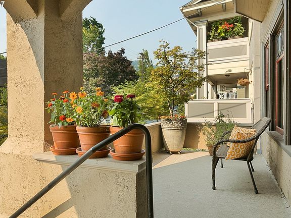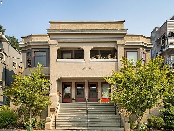 This 1913 Old Nob Hill Valencia Condominium, full of quality and charm offers the absolute best of Portland living, all within walking distance. Enjoy the abundance of shopping, dining and entertainment of celebrated 21st and 23rd streets as well as the Historic Alphabet District. The sunny and spacious south facing front veranda welcomes you into the quintessential turn-of the-century living room with beautiful oak floors, leaded glass and a decorative fireplace with wood mantle and tile surround. The living is open to the formal dining with wainscoting and original plate rails. There is a cozy alcove library with custom wood bookshelves and storage cabinets and powder bath. The dining flows into the expansive updated kitchen with white marble, old world charm and modern appliances, including gas range. The two bedrooms, both featuring gorgeous oak flooring, share the white tiled bath with pedestal sink and heated soaking tub and shower. The laundry room with stacked washer and dryer offer additional storage. The cozy family space adjoining the kitchen leads to a relaxing deck and landscaped patio area offering raised beds for vegetable gardening, BBQ and bicycle storage. Come home to ultimate Portland urban living with the best just outside your front door, including the convenient streetcar as well as Forest Park, one of the largest urban forests in the U.S. No pets and no smoking please. Chapman Elementary, Sylvan Middle School and Lincoln High School. Please see our website for information on application requirements and screening criteria. We will begin accepting applications within 72 hours of listing 9/19/24. This dwelling unit does not qualify as a 'Type A Unit' (accessible unit) per Oregon structural building code and ICC A117.1.