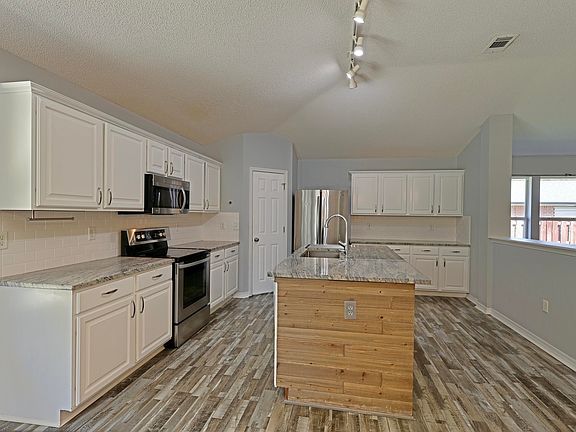 This 4BR/2BA home features high ceilings, open floor plan, and a spacious kitchen with stainless appliances, walk-in pantry, and breakfast bar. The master suite offers patio access, double vanities, soaking tub, and walk-in closet. Set on a fenced lot backing to woods for added privacy, with sidewalks and underground utilities. Walk to Navarre High and the Youth Sports Complex. No smoking inside unit and pets upon approval. 650 min credit score, background check, first month/security deposit due before move-in.