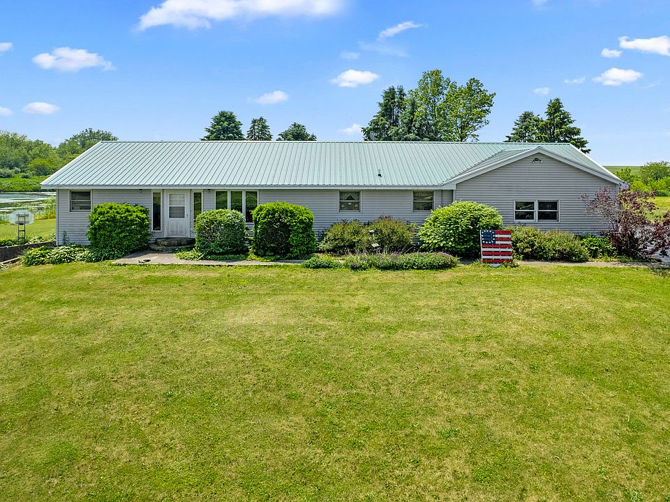 Ready to make your country living dreams come true?! This is the property you've been waiting for! This spacious 4 bedroom, 3 bathroom ranch is cozily situated on over 11 acres, with beautiful panoramic views for miles! Featuring a spring-fed pond with over an acre of surface area and plenty of fish! (scroll through the photos for some recent catches!) Enjoy the open and airy kitchen, dining area and family room, with plenty of large windows to let in the sunshine and fresh country air...the family room opens up on to the deck allowing easy enjoyment of all the peace and tranquility your backyard has to offer! Get ready to observe a variety of birds, geese, deer and plenty of other wildlife literally right out your back door! The master bedroom with its accommodating ensuite bathroom and double closets is truly like its own little retreat, and the other 2 bedrooms on the main floor are generously sized as well and share another full bathroom. This ranch home has been well-maintained by its one and only owner--it offers the ease and convenience of first floor living, with the perks of a full and finished walk-out basement featuring ample storage and its own bedroom and bathroom! This home also boasts an attached double garage, owned solar panels that keep the power bill extremely low ($0-$80 monthly), a full home generator, and a brand new well pump. The majority of windows have been replaced within the last 3 years, and the kitchen/dining area flooring was replaced 2 years ago. An absolutely stunning homestead in a great area! These kinds of properties are truly a treasure--don't miss the chance to make this one yours today!