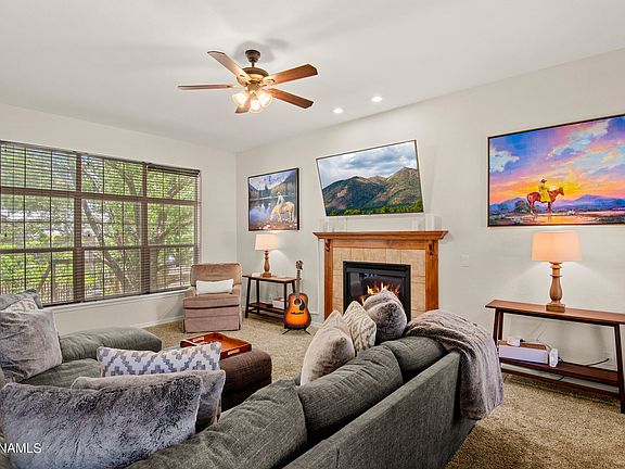This lovely home is in the desirable neighborhood of Boulder Pointe and is being offered turnkey. Located on scenic HOA open space, this home is perfectly located to enjoy the natural beauty of Flagstaff while still being in the heart of town. An ideal floor plan, this home offers lots of natural light and perfectly appointed spaces to enjoy. Large living room with fireplace, kitchen with newer appliances, and large dining nook complete the main living space. Primary bedroom suite is located on the main level Home has central AC/heat. Upstairs you'll find 2 large bedroom plus a loft. Large backyard w/deck, storage shed, and views! Close to trail system, shops, restaurants and amenities. Walking/biking distance to NAU. Don't miss your opportunity to own this incredible home in Flagstaff.