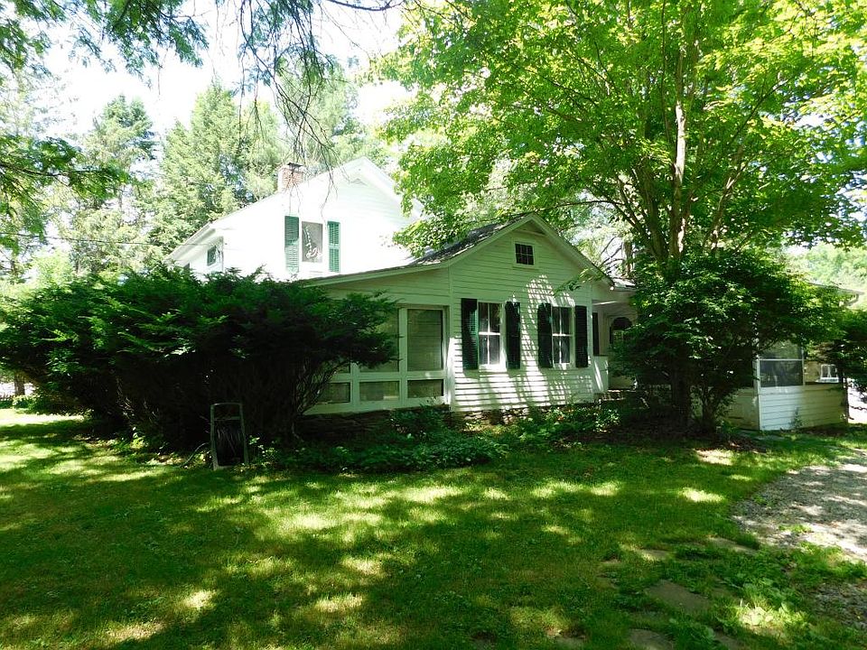 Affordable gem in the Hamlet of West Danby - this 3/4 bedroom charmer offers a lot of space with modern elements for today's living. Bright eat-in kitchen with stainless counters, cute breakfast nook, nice tile accents. Formal living room with woodstove insert, plenty of space for entertaining & dinners with family and friends. Main level bath and laundry. Converted porch is possible 4th bedroom on the main level. Pine floors up with 3 beds & 1/2 bath. Enclosed screened porch. Municipal water thru W. Danby. Central AC! Tucked off the road with circular drive. 3+ acres & lots of garden spaces.