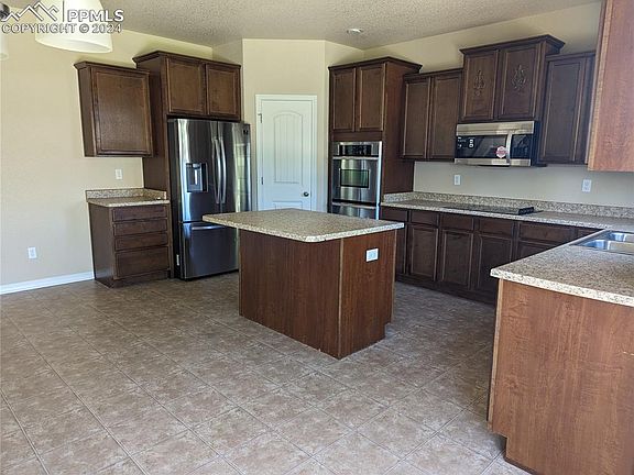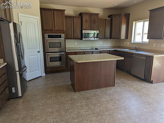 Wonderful and large home with easy access to Ft Carson, Peterson AFB, and I-25. Great floor plan with excellent use of square footage. High ceilings on main level. 5-piece master bath and walk-in closet. Big rooms everywhere. 2 living spaces, one on each level. All bedrooms on upper level and all have walk-in closets. Laundry room on upper level. Large office with french doors, can easily be used as fourth bedroom or guest bedroom. Central A/C. Stainless steel kitchen appliances and kitchen island. Lots of kitchen storage. New carpet. New interior paint. New roof. Attached 2-car garage. Fenced backyard. Interior professionally cleaned. ready to go QUICKLY.