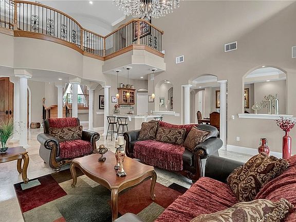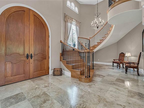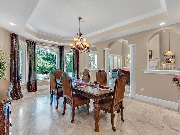 Situated on 5.5 prime acres boasts a private custom built Mediterranean estate offering the finest luxurious details throughout. Stately gates open to a circular paved driveway with a center piece four tier fountain. In impeccable condition, this property makes an ideal home or retreat with ample accommodation for guests including 7 bedrooms, 7.5 bathrooms in over 7,800 square feet of living area. Ten foot solid mahogany arched doors with a sweeping solid oak free standing staircase and chandelier greets you at the elegant foyer. The large picturesque windows, soaring 22 foot high ceilings, and well-designed layout creates comfortable living spaces that is flooded with natural daylight. The gourmet kitchen opens to the family room and is fully equipped with GE Profile stainless steel appliances, double oven, vented hood, custom solid wood cabinetry, and granite counters. The owners suite is exquisite and includes a sitting area, surround sound, coffered ceiling, large walk in closets, marble bathroom with double vanities, air tub, walk in shower, and two water closets. All secondary bedrooms are spacious and en-suites. Detached guest house has its own kitchen and living room which is perfect for visitors or in-laws. The property is just minutes away from Walt Disney World, Champions Gate, great restaurants, shopping, area attractions, major roads, and more. Few properties command the privacy and proud stature of this well-built and maintained home. Be sure to click on the virtual tour link.